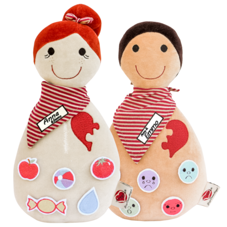 Anna & Emmo bieten Kindern auf spielerische Art und Weise die Möglichkeit, sich mit sich selbst und ihrer Umwelt schon in jungen Jahren auseinanderzusetzen. In dem Puppenpaar sind viele kleine Botschaften verpackt, die zur Entwicklung des Kindes beitragen, ob als Sprachrohr zwischen Eltern und Kind, Lernobjekt oder alltägliche Begleiter…